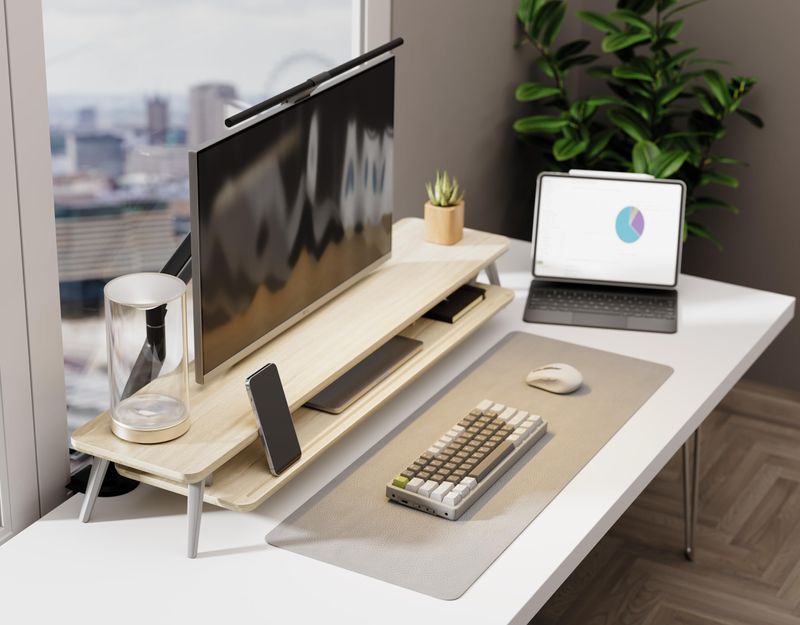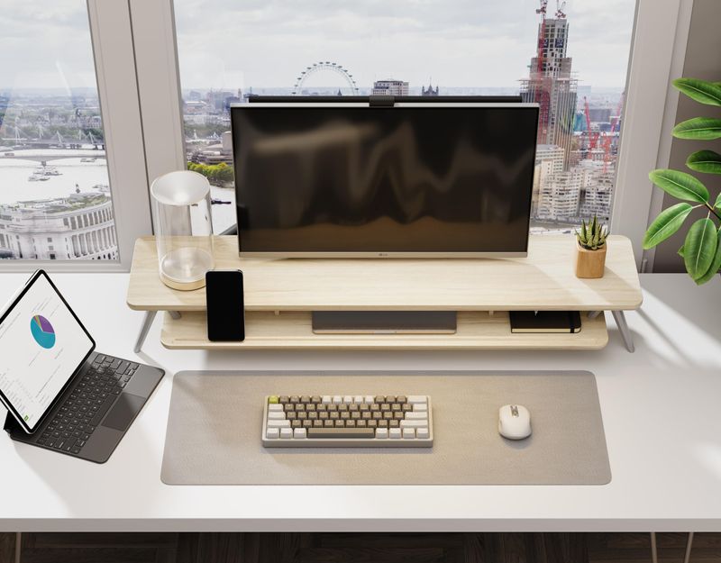 Fenge Soporte para monitor doble, soporte elevador para 2 monitores, estante de escritorio de madera
