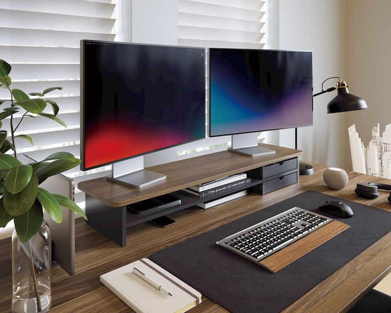 Fenge Soporte para monitor, elevador de monitor doble, soporte de escritorio grande de 42.5 pulgadas