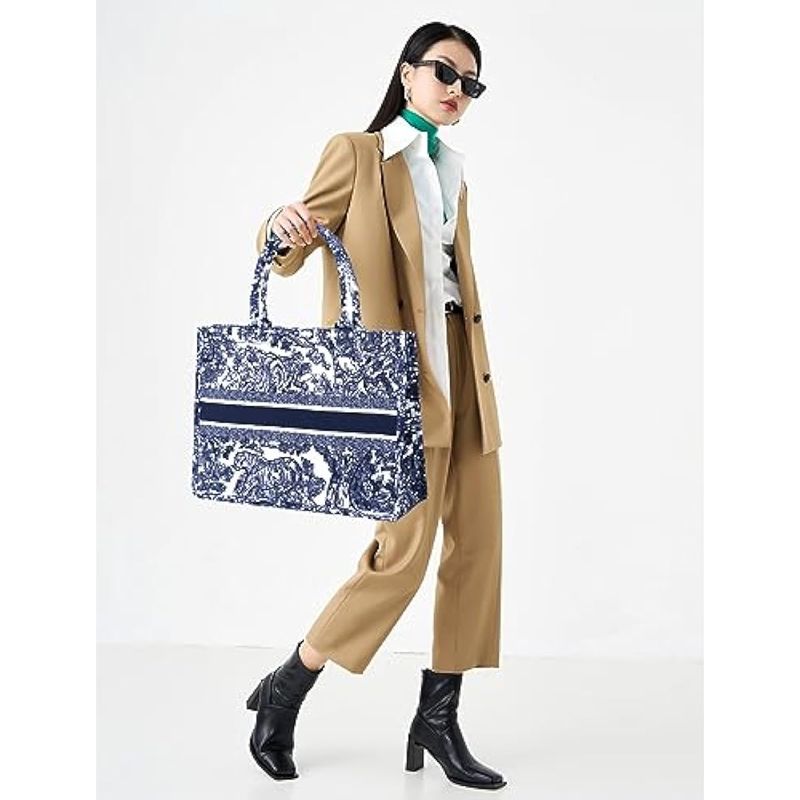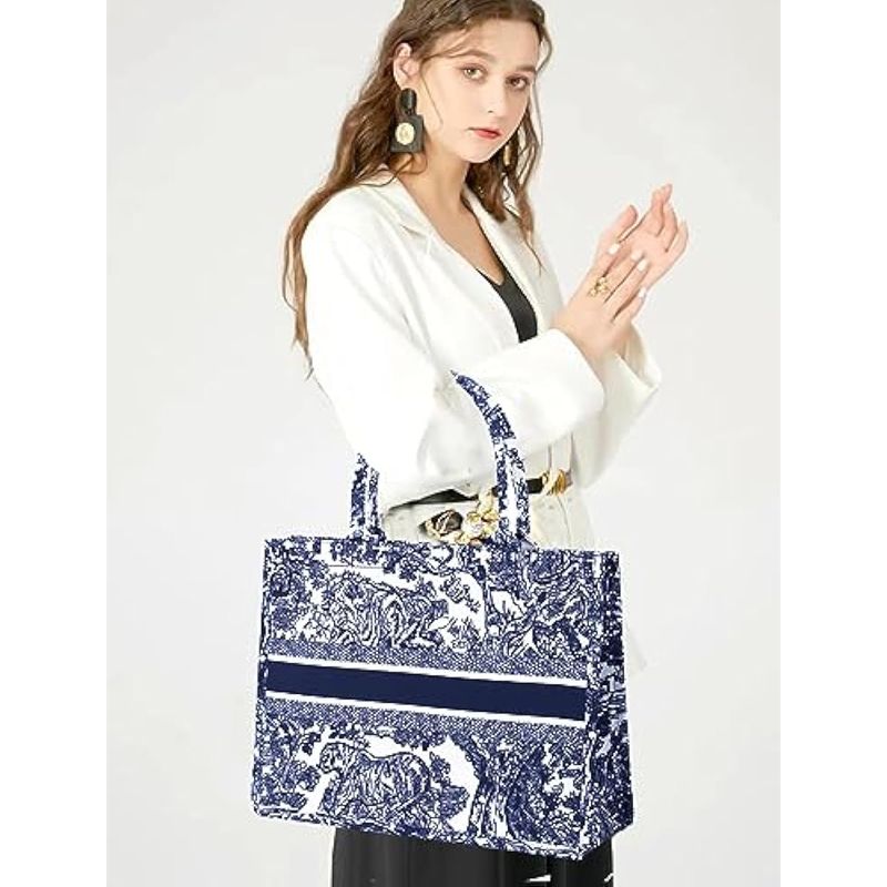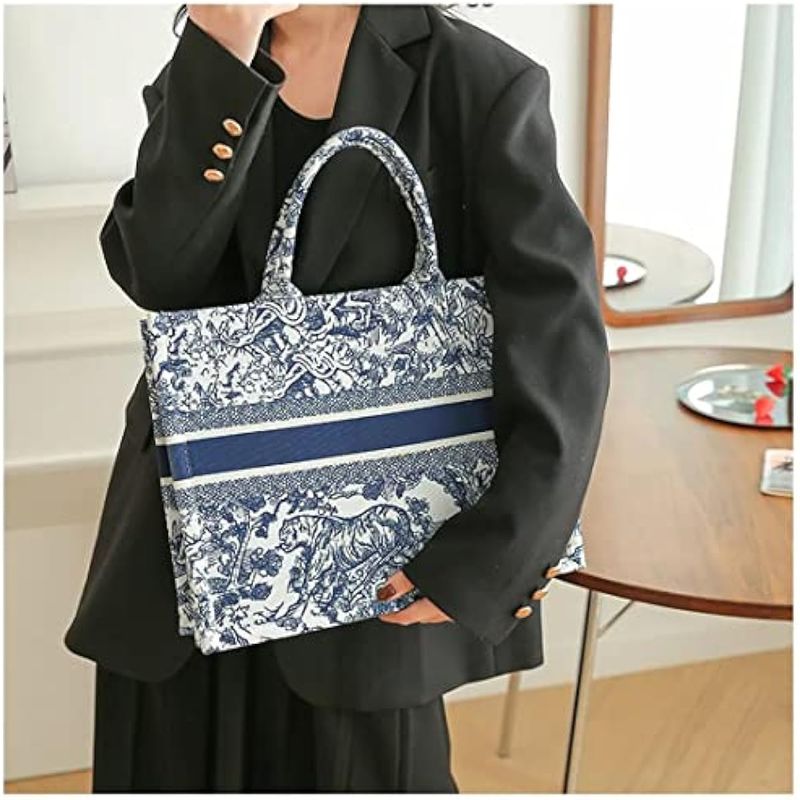 FENGJINRUHUA Bolso de mano de lujo de moda Bolso de lino de algodón Bordado Jacquard de gran