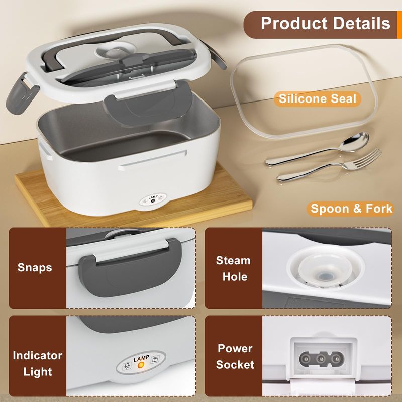 HOGARBAZARUTENSILIOS DE COCINAFiambrera eléctrica para adultos, 60-80 W, calentador de alimentos para hombre, trabajo, automóvil,