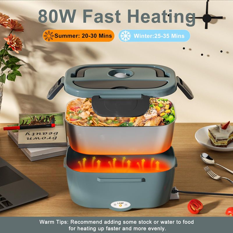 Fiambrera eléctrica para adultos, 60-80 W, calentador de alimentos para hombre, trabajo, automóvil,