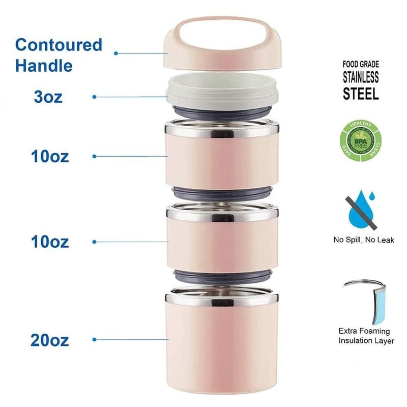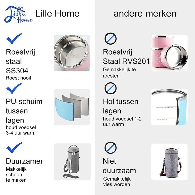 HOGARBAZARDECORACIONFiambrera Lille Home con compartimento aislante térmico de acero inoxidable y apilable, caja bento