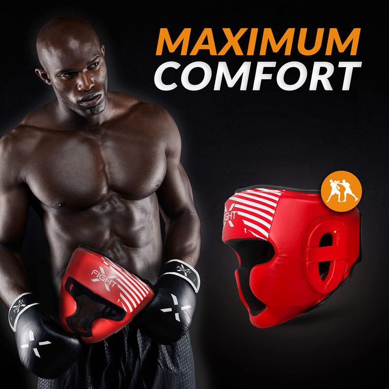 FIGHTX BOXING HEADGEAR FOR BOXERS MMA TRAINING EQUIPMENT SET FOR YOUTH BOXING HEADGUARD SYNTHETIC LEATHER MUAYTHAI KICKBOXING UFC SPARRING HELMET FIGHTING HEADGEAR HEAD GUARD PROTECTOR FOR MEN & WOMEN