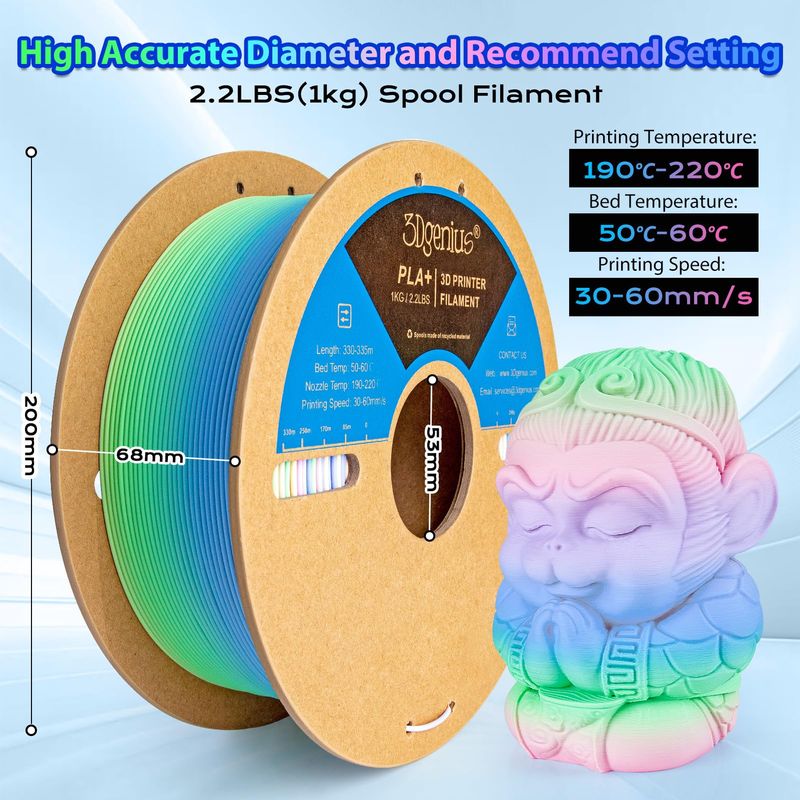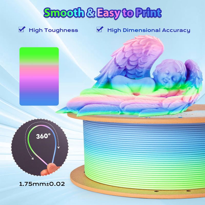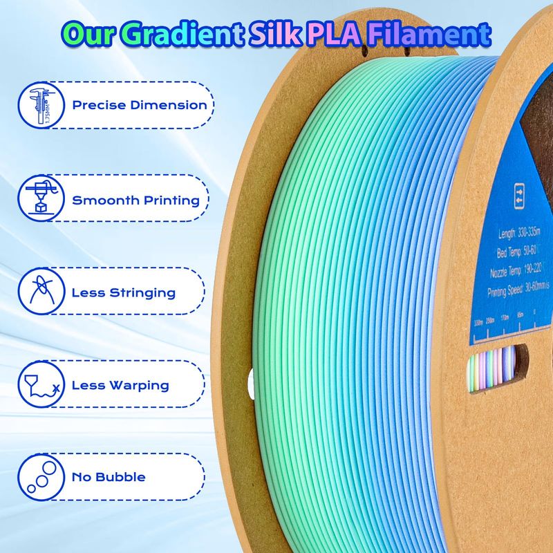 Filamento PLA Silk Rainbow de 0.069 in, filamento de impresora 3D de ácido poliláctico de seda que
