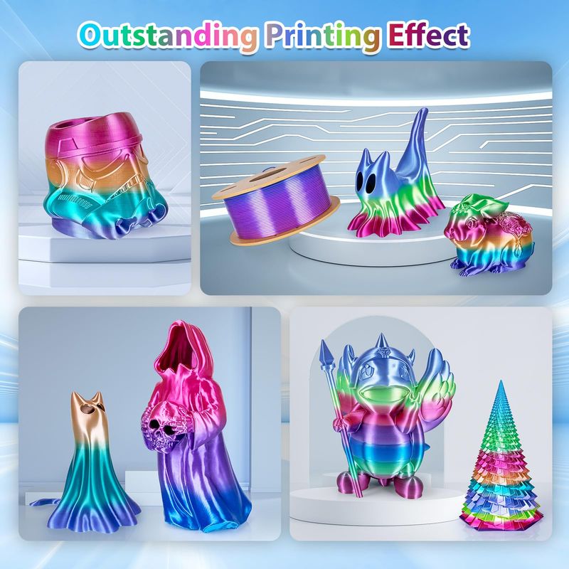 Filamento PLA Silk Rainbow de 0.069 in, filamento de impresora 3D de ácido poliláctico de seda que