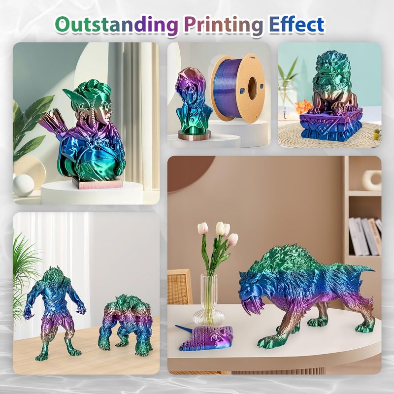 Filamento PLA Silk Rainbow de 0.069 in, filamento de impresora 3D de ácido poliláctico de seda que