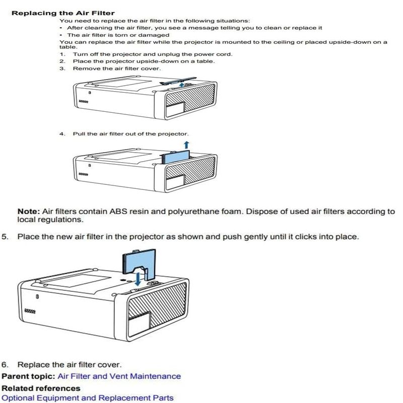 Filtro de aire de repuesto para proyector EPSON ELPAF57 EB-W70, EB-W75, EF-100BA, EF-100B, EF-100WA,
