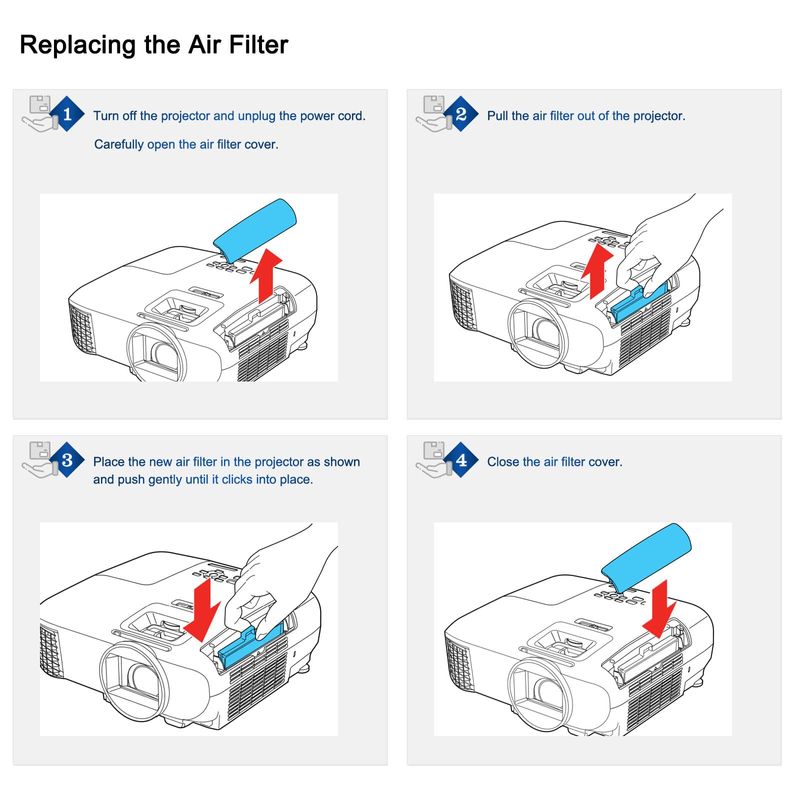 Filtro de repuesto ELPAF54 ELPAF55 para proyector Epson PowerLite Home Cinema EX9240 2100 2150 2250