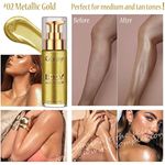 Firstfly - Iluminador líquido, base líquida de maquillaje para rostro y cuerpo (#02 dorado metálico)