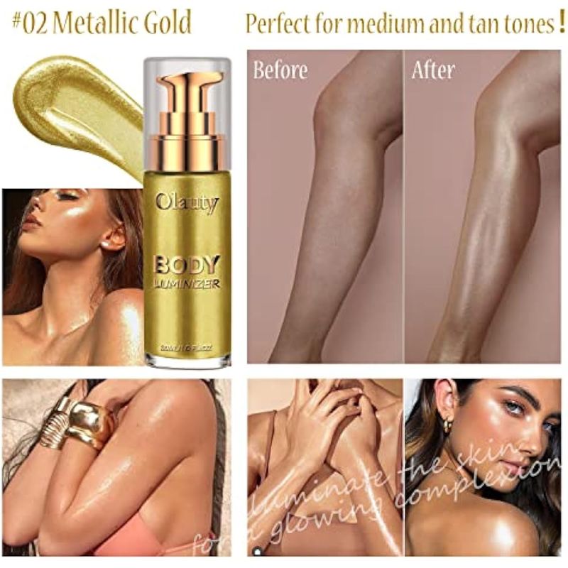 BELLEZA Y SALUDBELLEZA Y CUIDADO CORPORALMAQUILLAJEFirstfly - Iluminador líquido, base líquida de maquillaje para rostro y cuerpo (#02 dorado metálico)