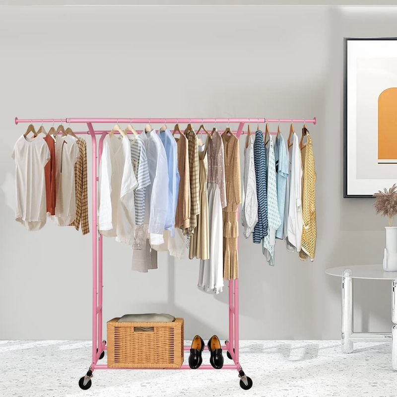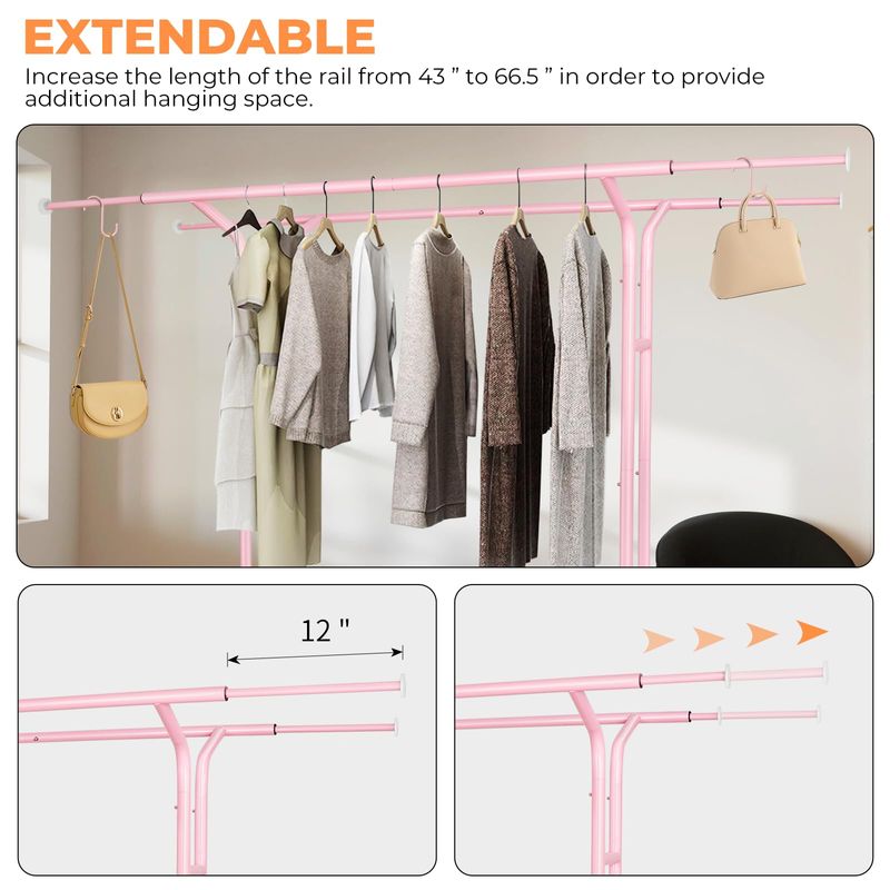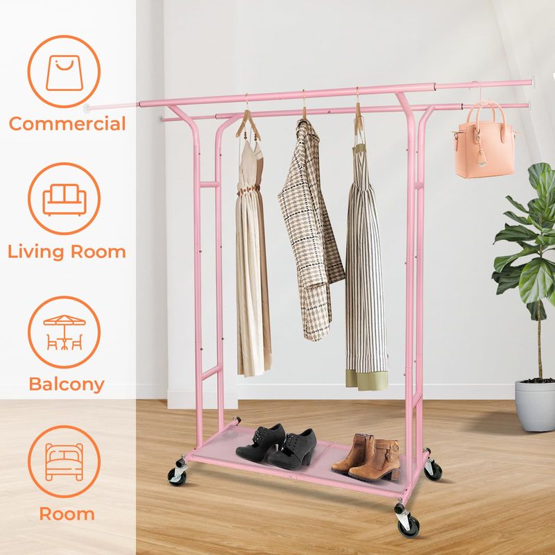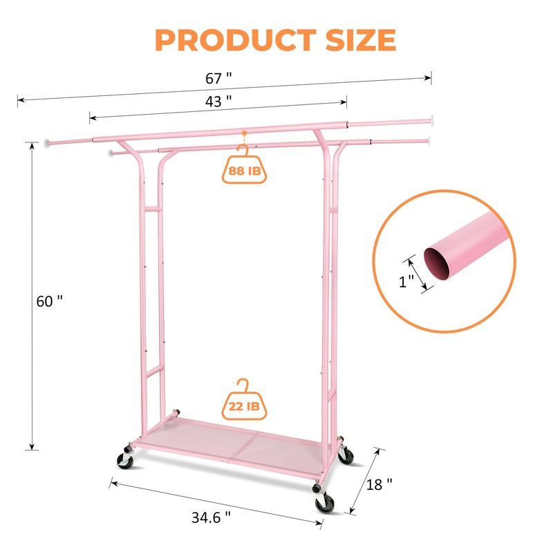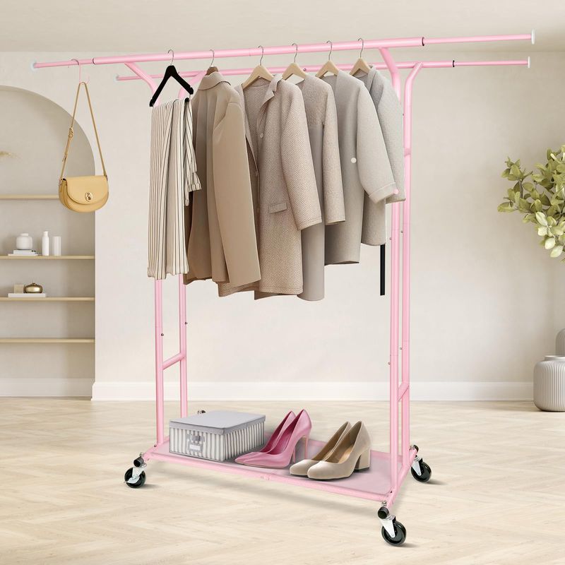 Fishat Estante de ropa resistente con 2 barras dobles para colgar ropa, organizador comercial de