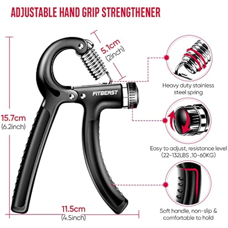 Despierta tu poder: fortalece tu mano, aumenta tu vitalidad. FitBeast - Kit de entrenamiento para fortalecer la fuerza del antebrazo y el agarre de la mano 5 accesorios.