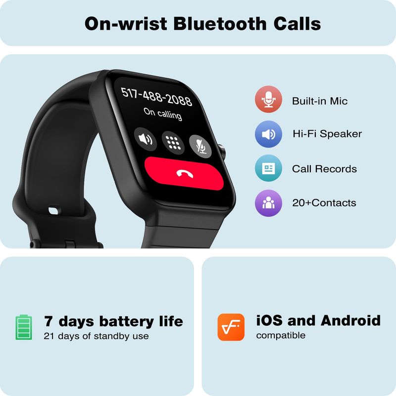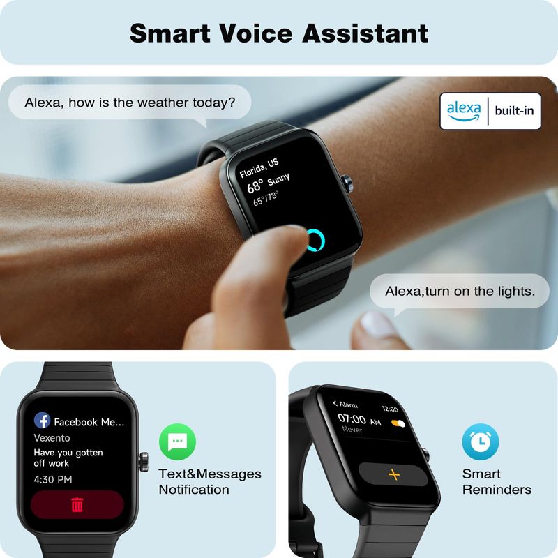 TELEFONIASMARTWATCHFitpolo Reloj inteligente para mujer, 1.8 pulgadas, Alexa Fitness Relojes de llamadas y texto, 100