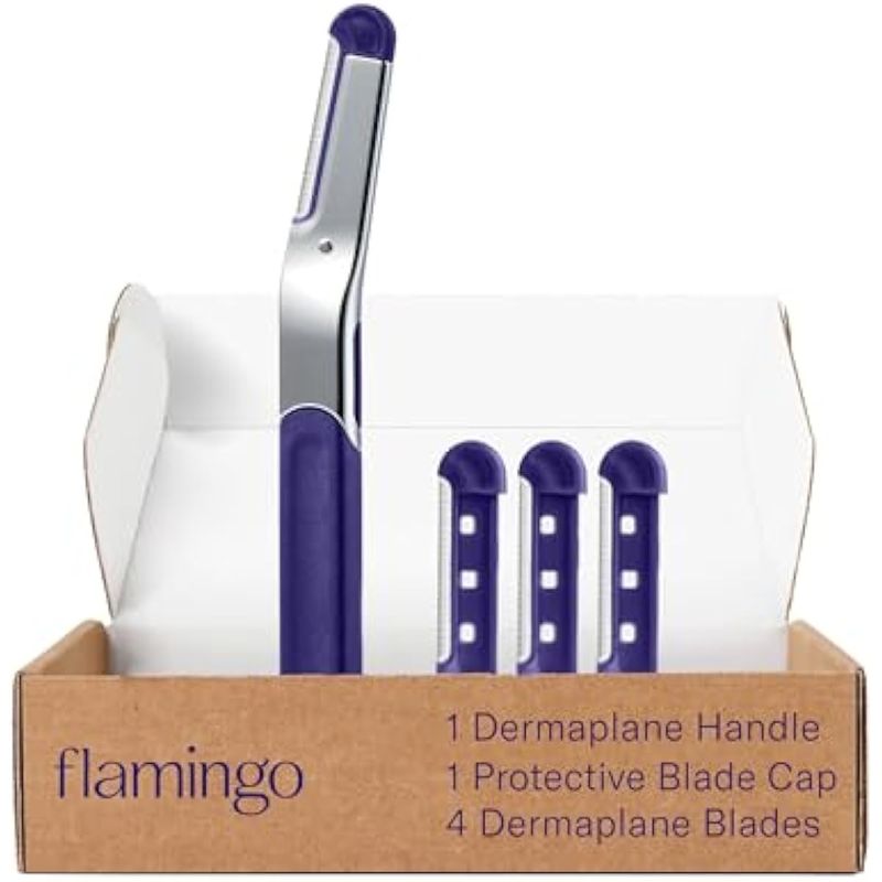 FLAMINGO DERMAPLANE KIT DE AFEITAR, REMOVEDOR DE VELLO FACIAL PARA MUJERES, INCLUYE 1 MANGO DERMAPLANE CON CUBIERTA DE HOJA Y 4 MAQUINILLAS DE AFEITAR REFLECTANTES