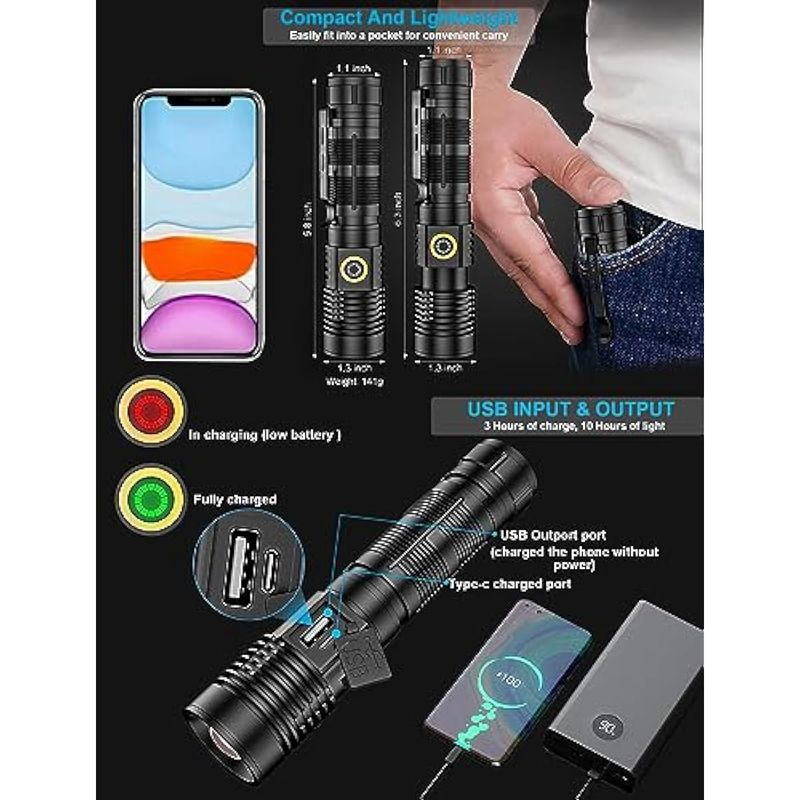 Flashlights High Lumens Rechargeable(Battery Included), 20000 Lumens Super Bright Powerful Small