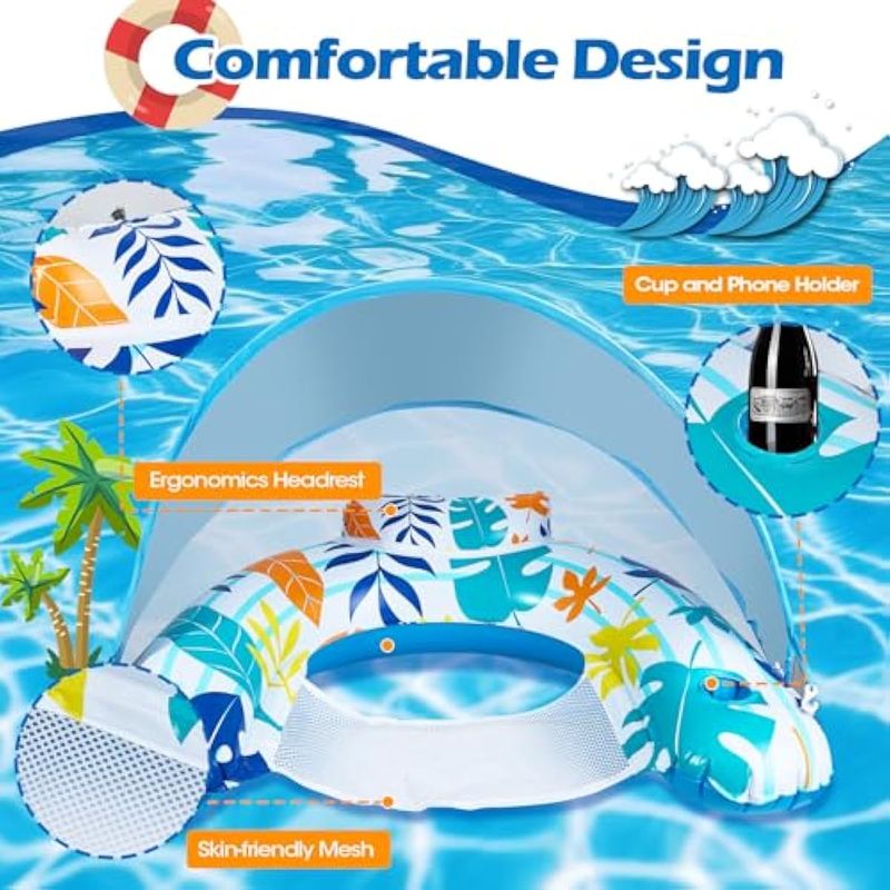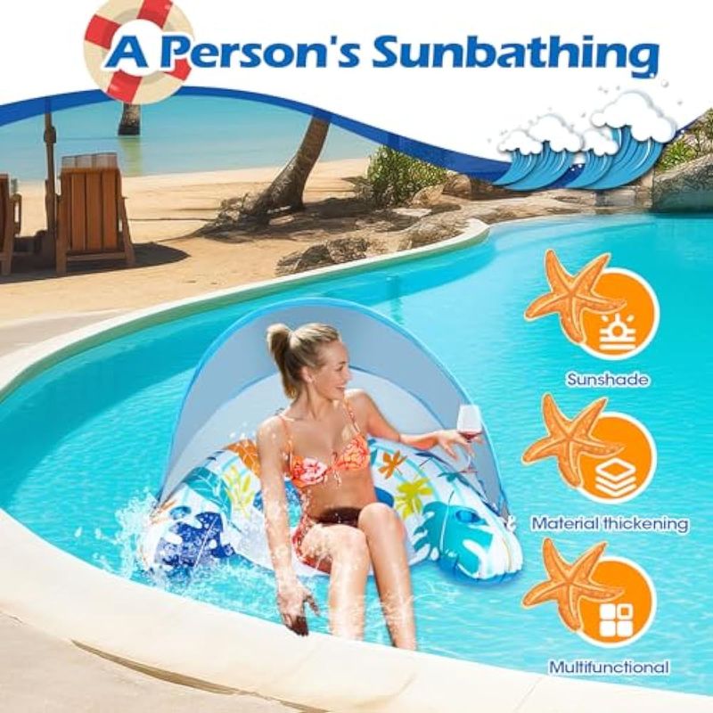 Flotador inflable para piscina, sillas de piscina con toldo y portavasos, flotadores de piscina para