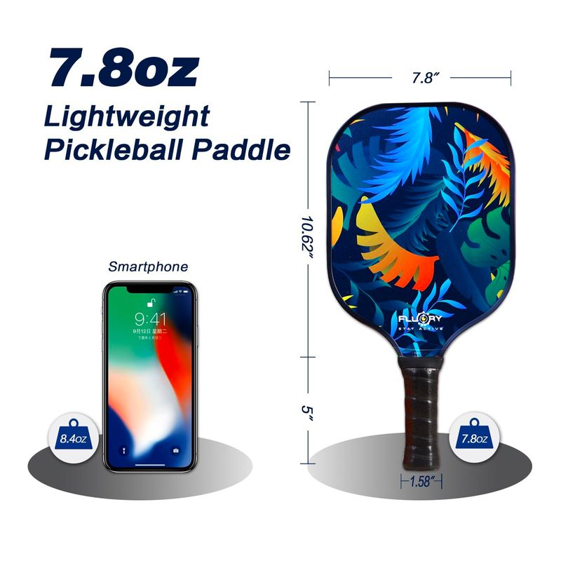 FLUORY El equipo de pickleball está fabricado en estricta conformidad con las normas USAPA, forma de paletas de pickleball de cuerpo ancho con 5 pulgadas de longitud de agarre y 4.3 pulgadas de circunferencia de agarre; raquetas de pickleball Dimensiones de la cara: 10.62 pulgadas de largo x 7.80 pulgadas de ancho x 0.43 pulgadas de alto. Paleta ligera de pickleball de 7.8 onzas, también está diseñada con protección de borde para mejorar la resistencia y durabilidad de la pala. Guard Protect the Paddle de rasguños y arañazos y prolonga su vida útil
