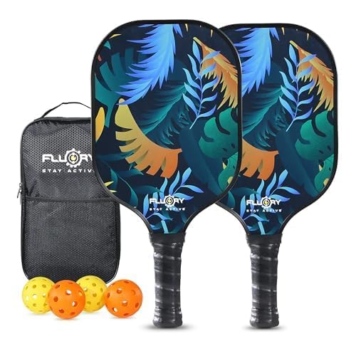 FLUORY PICKLEBALL PADDLES SET OF 2, LIGHTWEIGHT FIBERGLASS SURFACE PICKLEBALL RACKETS SET WITH 4 OUTDOOR INDOOR BALLS,1 CARRY BAG,PICKLEBALL RACQUETS GIFTS FOR MEN WOMEN
