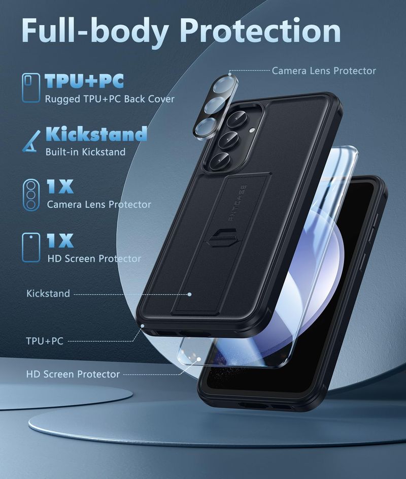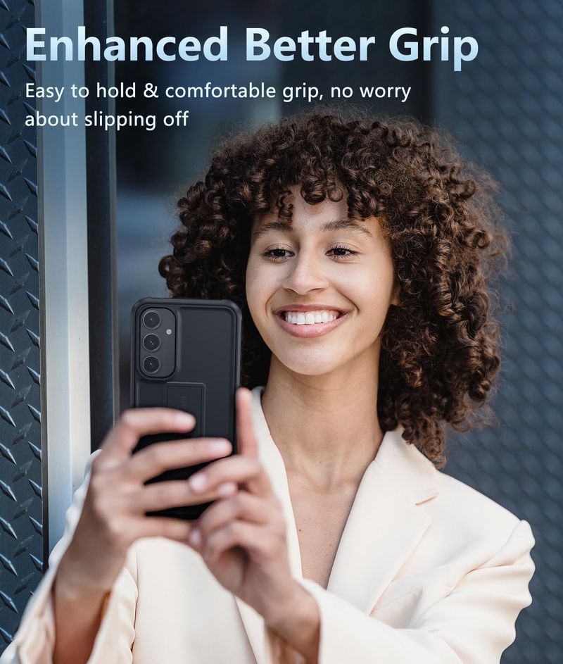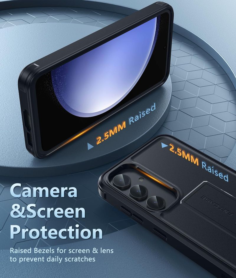 Soporte incorporado: esta funda para Samsung Galaxy S23 FE con soporte oculto funciona perfectamente tanto en ángulos verticales como horizontales. Conveniente para leer, ver películas, jugar juegos y tiempo cara a cara con tus amigos. Proporciona visualización vertical y horizontal con manos libres.