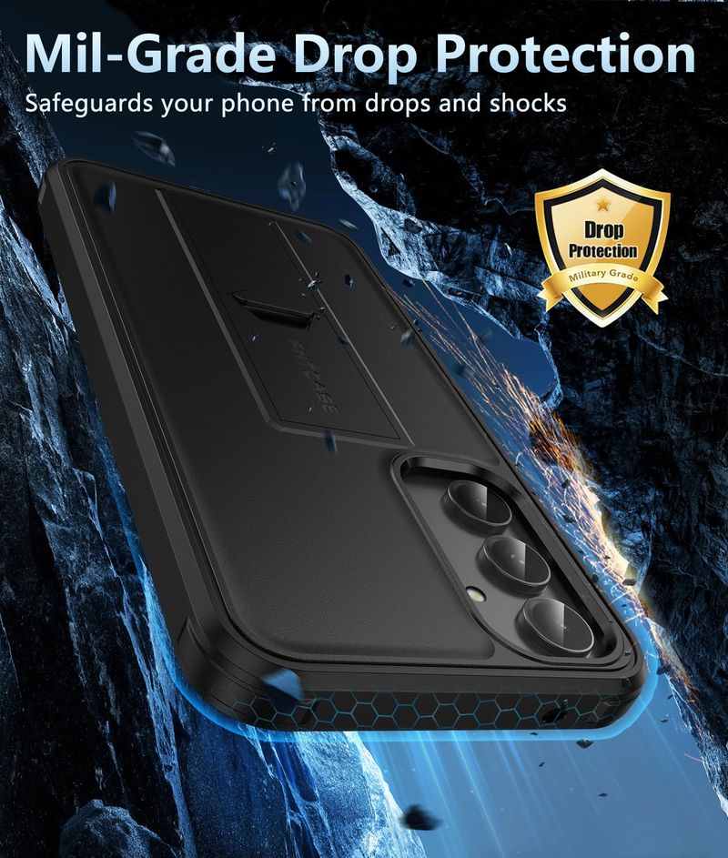 Protección contra caídas de grado militar: prueba de caídas de grado militar que garantiza que a prueba de golpescaídasresistente a los impactos. Esta funda para Samsung Galaxy S23 FE está hecha con una parte trasera resistente de policarbonato duro mate y amortiguadores de goma termoplásticos flexibles de TPU suave al tacto que absorben los golpes para proteger el teléfono contra caídas accidentales, golpes e impactos. Goma engrosada elevada en bolsas de aire ranuradas de cuatro esquinas para derrotar el desgaste diario.