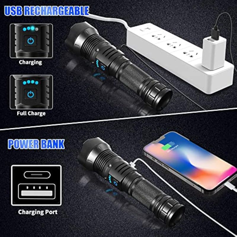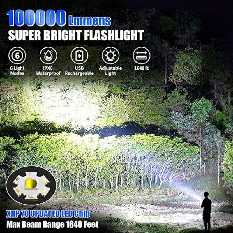 Foleto Linternas LED recargables de alto lúmenes, 100000 lúmenes, linterna súper brillante, potente