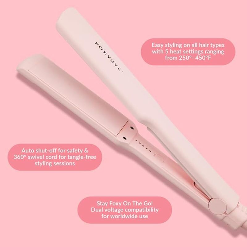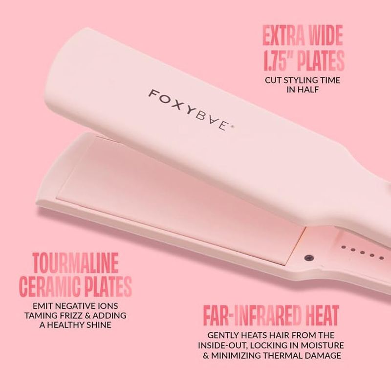 FoxyBae Sleek & Slay - Plancha plana de cerámica de 1.75 pulgadas de ancho, color rubor,
