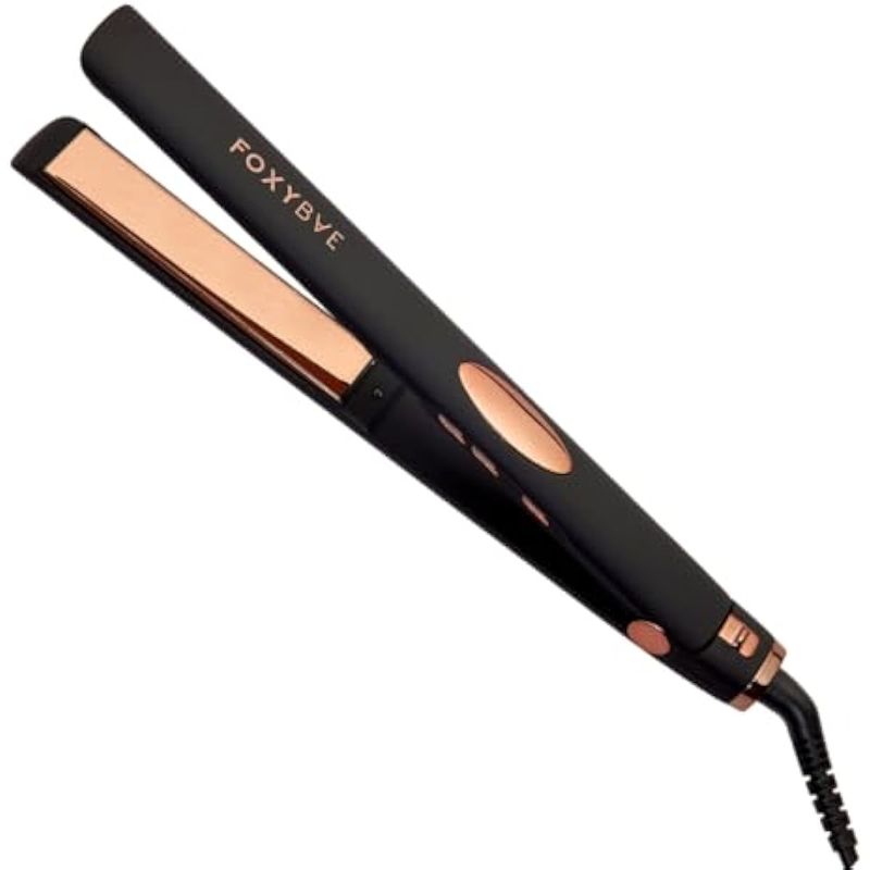 FOXYBAE TRéS SLEEK - PLANCHA PLANA DE TITANIO, SIN ENCRESPAMIENTO, CERRADURAS MáS BRILLANTES Y MáS SUAVES, HERRAMIENTAS DE PEINADO DE DOBLE VOLTAJE, PANTALLA LCD, CONTROL DE TEMPERATURA, APAGADO