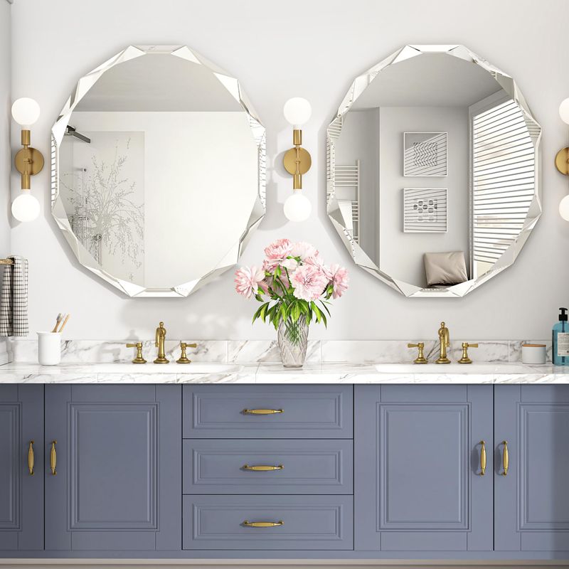 Frameless Scalloped Wall Mirror for Bathroom - Round 24'' X 24'' X 1" Beveled Edge Frameless