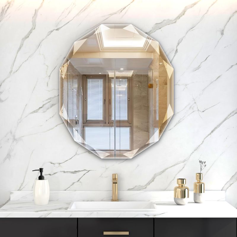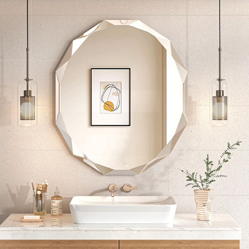 Frameless Scalloped Wall Mirror for Bathroom - Round 24'' X 24'' X 1" Beveled Edge Frameless