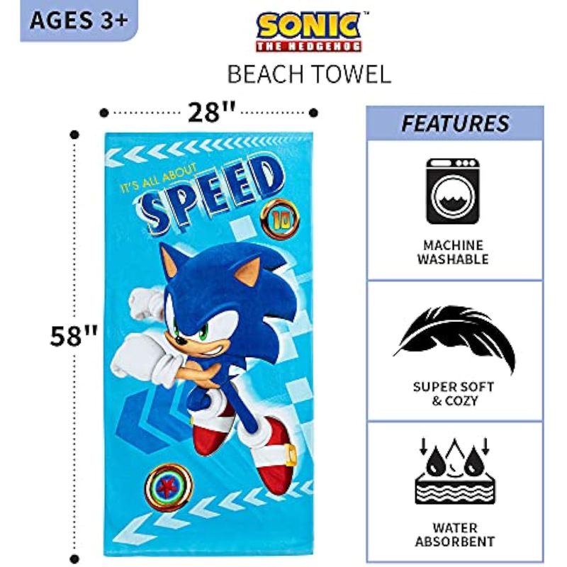 Franco - Toalla infantil de playa, de algodón supersuave, 58 x 28 pulgadas, Sonic The Hedgehog