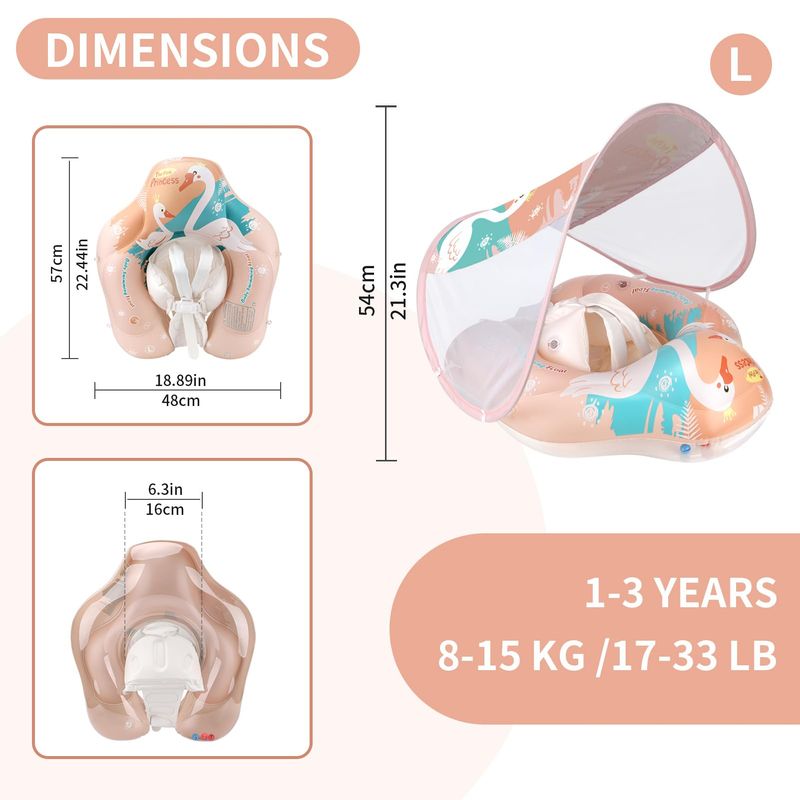 ??Actualización?El flotador de natación para bebé está diseñado para ayudar a los bebés a aprender a patear y nadar en una posición horizontal en lugar de vertical, el toldo extraíble tiene lados de malla y ofrece protección solar UPF 50+.