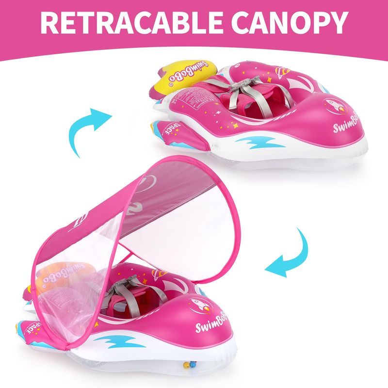 ??Actualización?El flotador de natación para bebé está diseñado para ayudar a los bebés a aprender a patear y nadar en una posición horizontal en lugar de vertical, el toldo extraíble tiene lados de malla y ofrece protección solar UPF 50+.