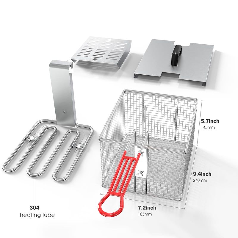 Calentamiento rápido: la freidora eléctrica está equipada con 2 potentes unidades de elemento calefactor de 1750W para un calentamiento rápido, cocción rápida y tiempo de recuperación reducido. Mantiene automáticamente la temperatura de fritura adecuada, por lo que puedes centrarte en cocinar