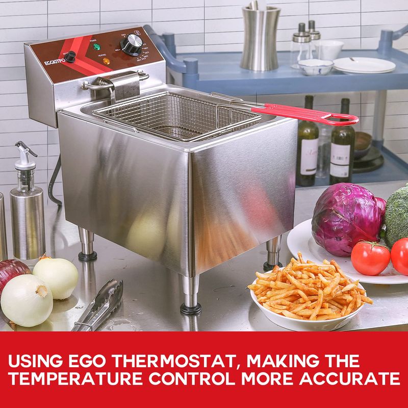 Freidora profesional: esta freidora es tanto para uso comercial como doméstico. Recipiente de aceite de 12 litros que es duradero y viene con dos asas que te permiten levantar fácilmente el tanque de la freidora para vaciar el aceite y limpiar el tanque. Perfecto para usos comerciales, como restaurantes, supermercados, puestos de comida rápida, bares, camiones de comida y fiestas. Adecuado para alas de búfalo, pollo, albóndigas, rollos de huevo, rollos de camarones, palitos de mozzarella, jalapeños poppers