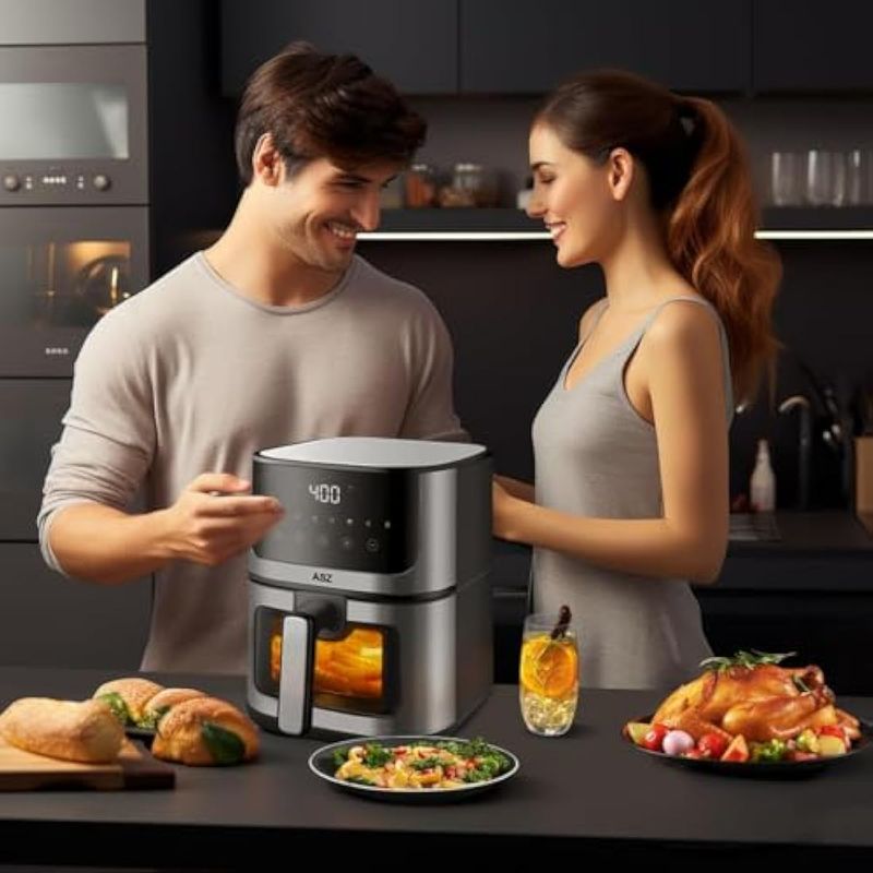 PEQUEÑOS ELECTRODOMÉSTICOSPEQUEÑOS COCINAFREIDORASFreidora de aire compacta de 5 cuartos con ventana, freidora digital de 5 cuartos para 2-3 personas,