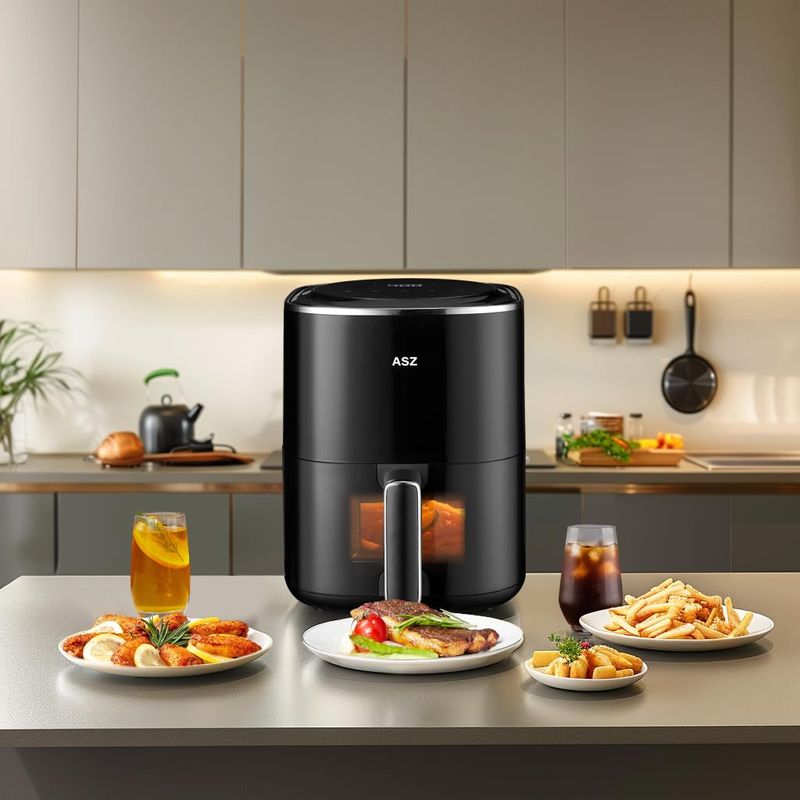 PEQUEÑOS ELECTRODOMÉSTICOSPEQUEÑOS COCINAFREIDORASFreidora de aire compacta de 5 cuartos con ventana, freidora digital de 5 cuartos para 2-3 personas,