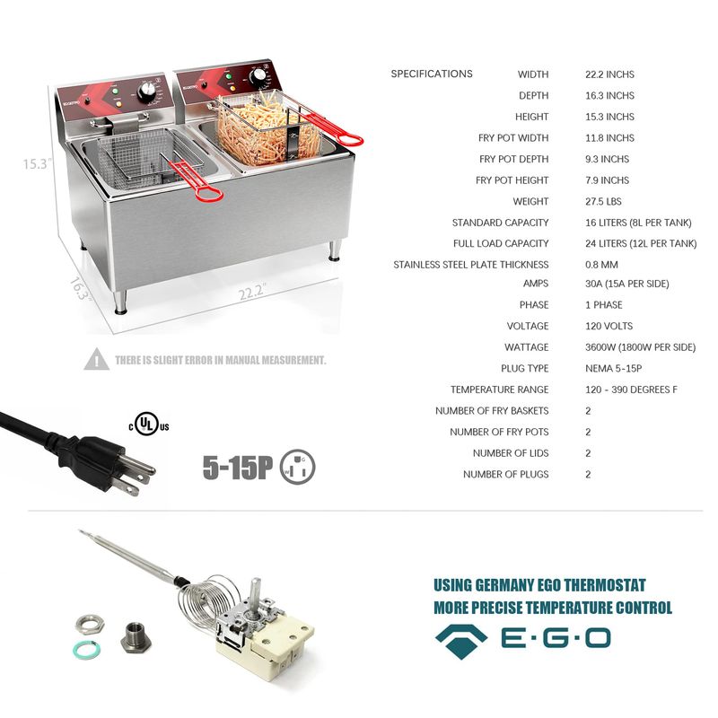 PEQUEÑOS ELECTRODOMÉSTICOSPEQUEÑOS COCINAFREIDORASFreidoras comerciales de 12 litros x 2 grandes de doble tanque eléctrico para encimera para