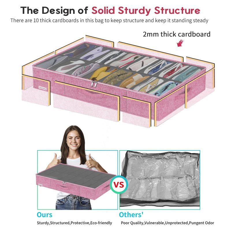 Friday Monkey Organizadores resistentes para almacenamiento de zapatos debajo de la cama, paquete de