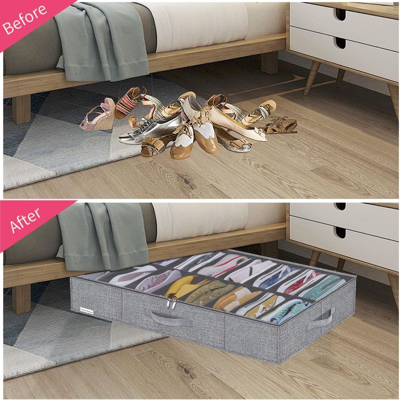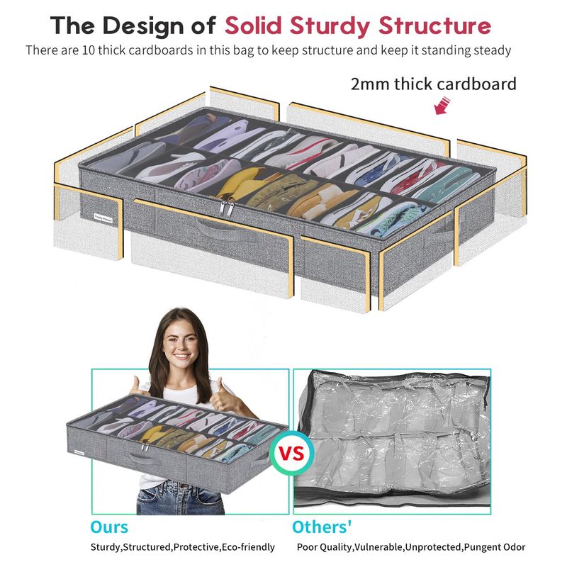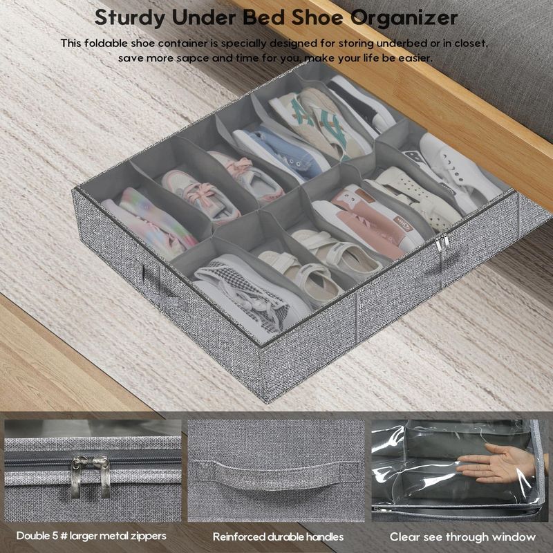 Personalizado para debajo de la cama: este juego de 2 organizadores de almacenamiento de zapatos se adapta a un total de 24 pares de zapatos, adecuado tanto para adultos como para niños. Tamaño grande: 29.3 x 23.6 x 5.9 in, longitud de cada celda 11.8 in.
