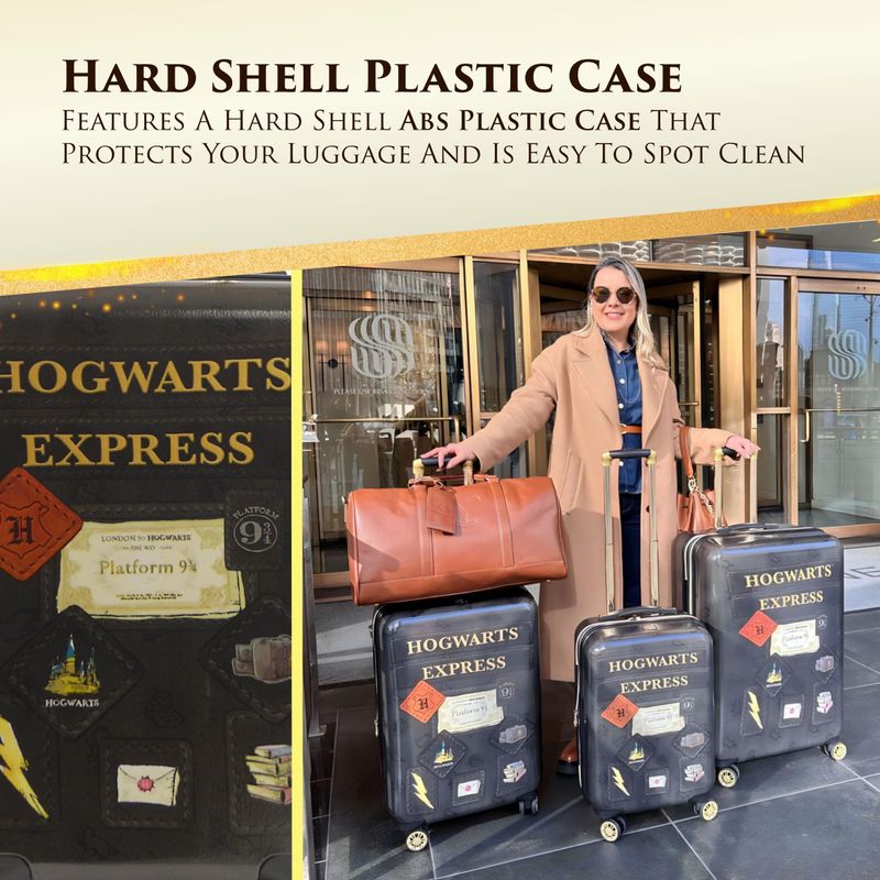 Juego de equipaje de viaje de Harry Potter: juego de equipaje rígido de 21, 25 y 29 pulgadas con un elegante diseño moldeado del logotipo de Harry Potter; pequeño portaequipajes rígido cumple con la mayoría de los requisitos de las aerolíneas para equipaje de mano y cabe en la mayoría de los contenedores superiores, las maletas medianas y grandes están diseñadas como equipaje facturado para aerolíneas