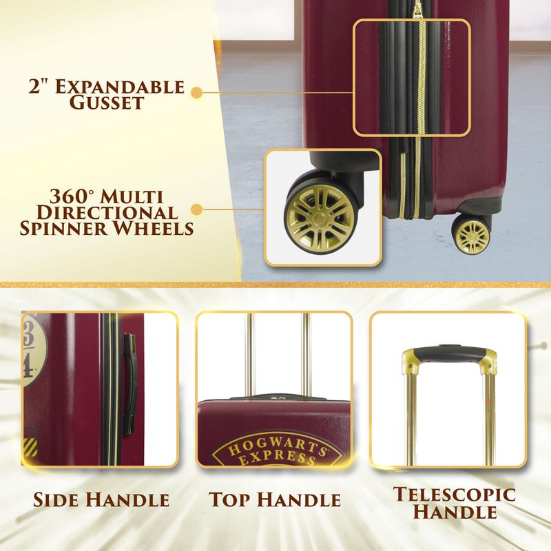 Juego de equipaje de viaje de Harry Potter: juego de equipaje rígido de 21, 25 y 29 pulgadas con un elegante diseño moldeado del logotipo de Harry Potter; pequeño portaequipajes rígido cumple con la mayoría de los requisitos de las aerolíneas para equipaje de mano y cabe en la mayoría de los contenedores superiores, las maletas medianas y grandes están diseñadas como equipaje facturado para aerolíneas