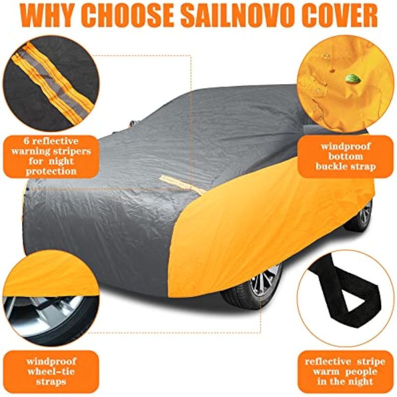 Varias funciones: la cubierta de nieve para automóvil tiene muchas funciones; puede evitar los rayos del sol y mantener el automóvil fresco en los días calurosos de verano, y también puede proteger tu automóvil en un día lluvioso; además, detiene tu automóvil de la suciedad, excrementos de pájaros y heladas cuando no estás conduciendo