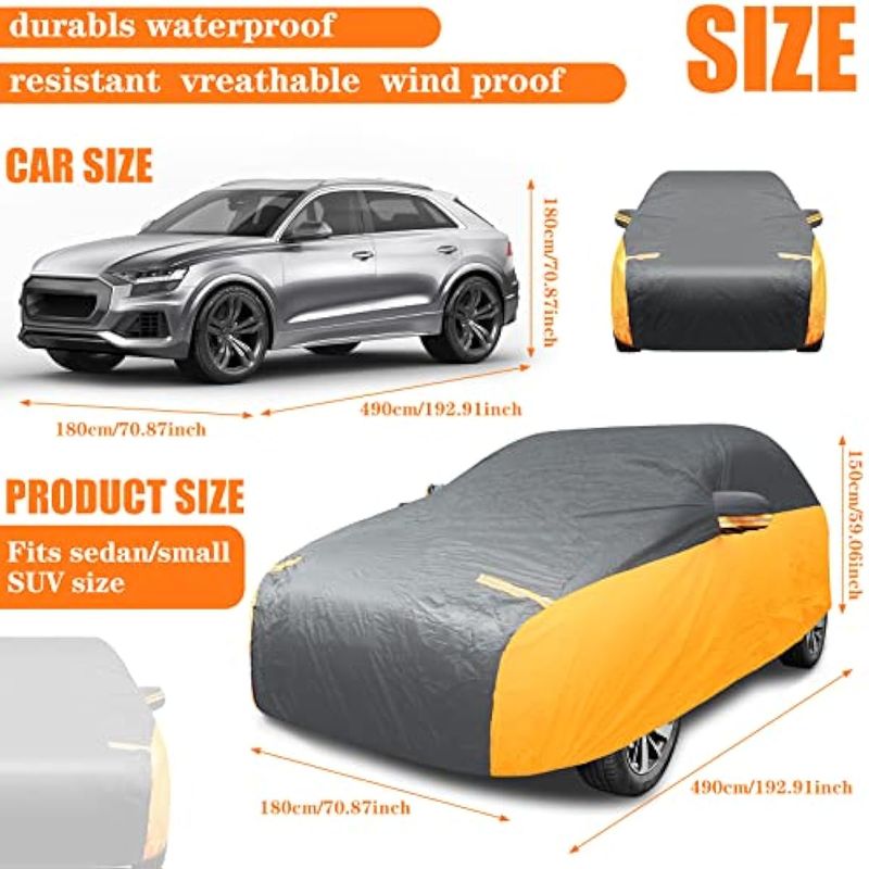 FUNDA COMPLETA IMPERMEABLE PARA LA MAYORíA DE LAS CONDICIONES METEOROLóGICAS PARA AUTOMóVILES, CUBIERTA COMPLETA PARA EXTERIORES, PROTECCIóN UV, SOL, RESISTENTE A LOS ARAñAZOS, RESISTENTE AL VIENTO, UNIVERSAL (NEGRO, NARANJA, SE ADAPTA A SUV DE 185-193 PULGADAS) DE LONGITUD 70 PULGADAS DE ALTO