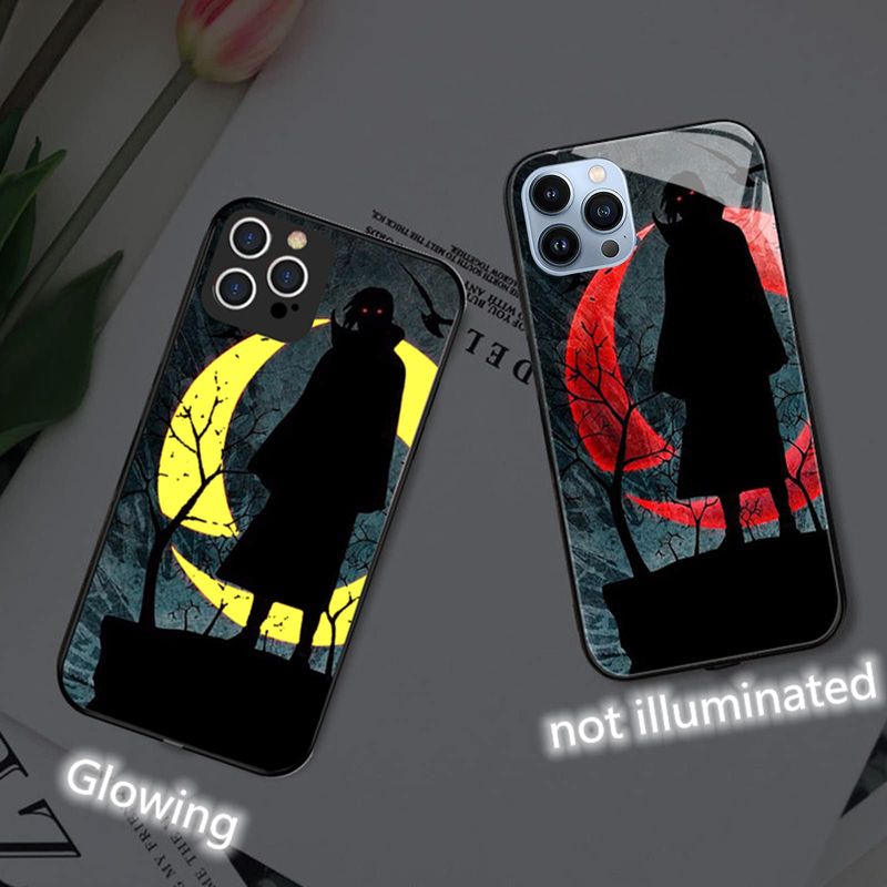Funda con luz LED para iPhone 12 Pro Max, cubierta trasera de vidrio templado que brilla