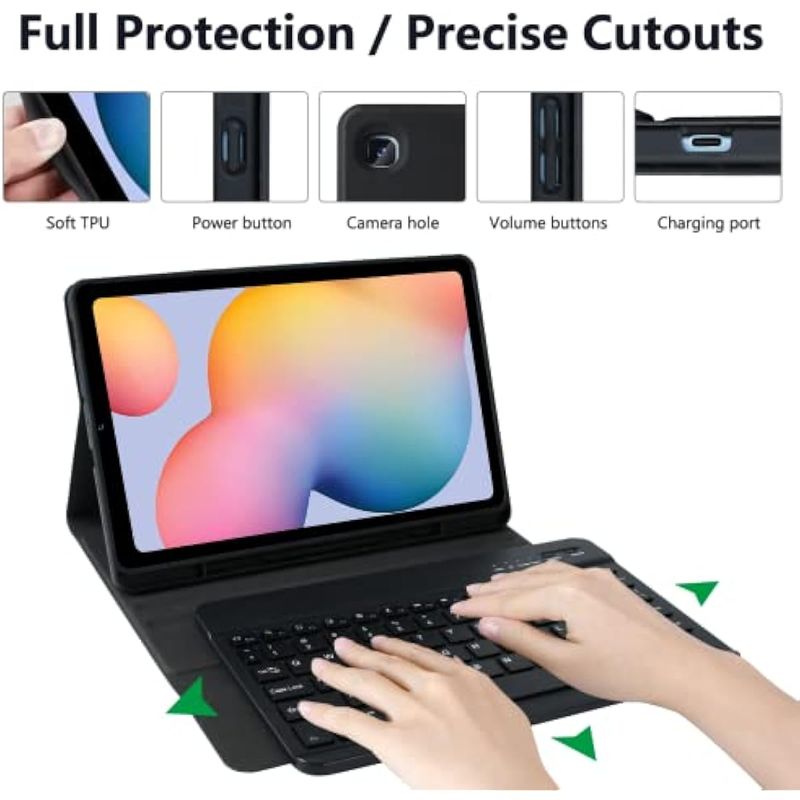 Contenido del paquete para funda de teclado Samsung S6 Lite: teclado S6 lite 2024 con funda, corte preciso que permite un acceso completo a los puertos, interfaz de usuario, sensores, altavoces, micrófono y cámaras. Recibirás una funda negra, teclado inalámbrico, manual de usuario idioma español no garantizado, cable cuando elijas los accesorios para galaxy tab s6 lite 10.4 SM-P610, SM-P615, SM-P613 y SM-P619 gen