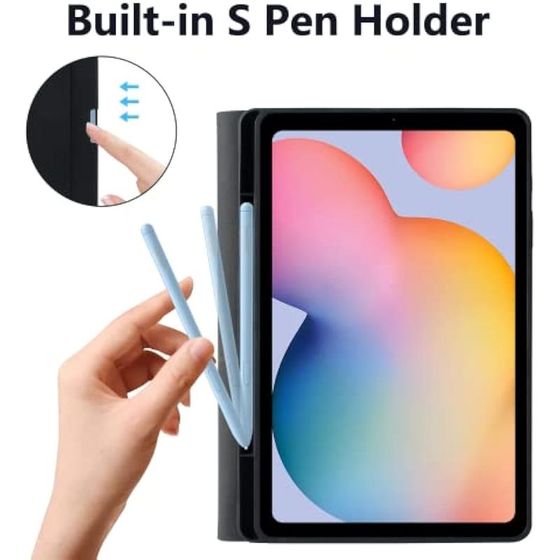 Múltiples ángulos de visión y soporte para bolígrafo sin bolígrafo - Tres ranuras en la funda para tableta Galaxy S6 Lite 10.4, diseño de soporte para bolígrafo S en la parte inferior de la funda de TPU suave para sujetar tu bolígrafo firmemente. Diferentes ángulos de visión horizontales del soporte, lo que te proporciona versatilidad cuando estás leyendo, escribiendo y viendo videos con nuestra funda Galaxy Tab S6 Lite con teclado