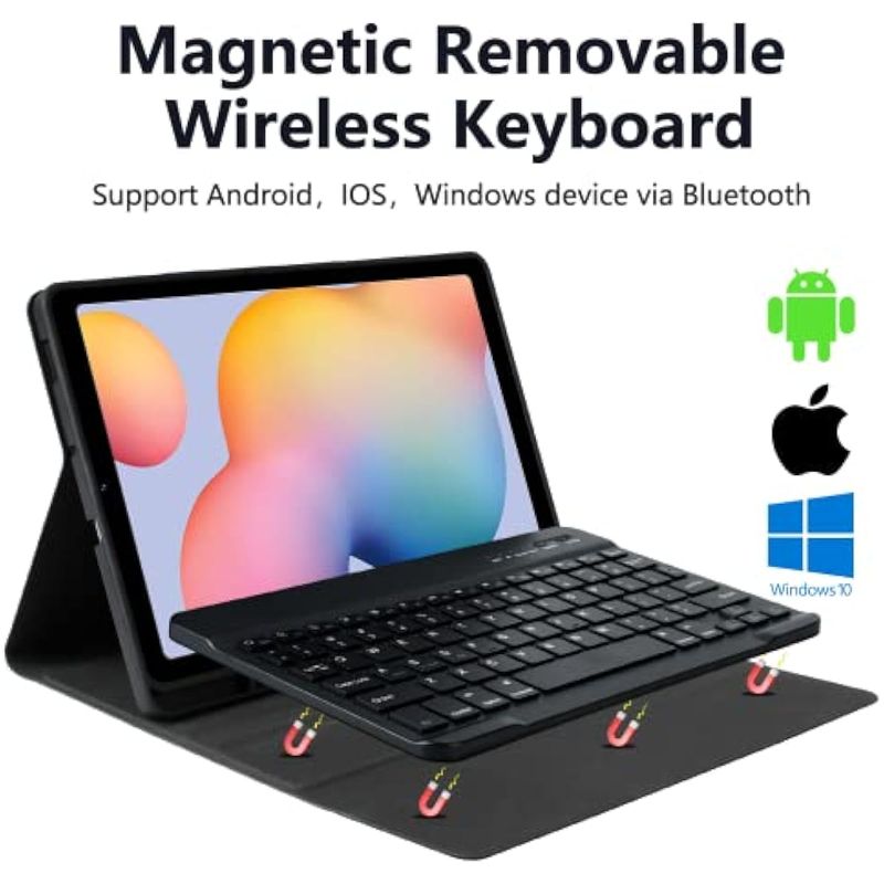 Teclado inalámbrico desmontable para Galaxy Tab S6 lite 10.4 - El teclado magnético Bluetooth y la funda para Samsung Galaxy Tablet S6 Lite, teclado Tab S6 Lite 10.4 separado con funda, se puede cambiar entre portátil o tableta S6 Lite 10.4 2022. Retira el teclado de la funda cuando no sea necesario usarlo