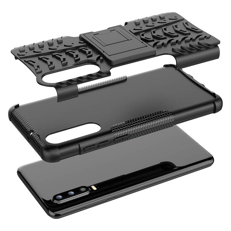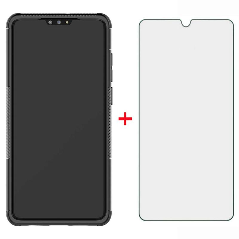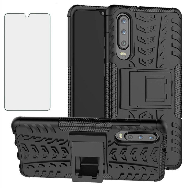 FUNDA DE TELéFONO PARA HUAWEI P30 LITE CON PROTECTOR DE PANTALLA DE VIDRIO TEMPLADO Y SOPORTE, ACCESORIOS DE CELDA HíBRIDA DURA Y RESISTENTE, TPU HUWAI P30LITE P 30 30LITE HAWAII HWAUEI CASES MEN BLACK