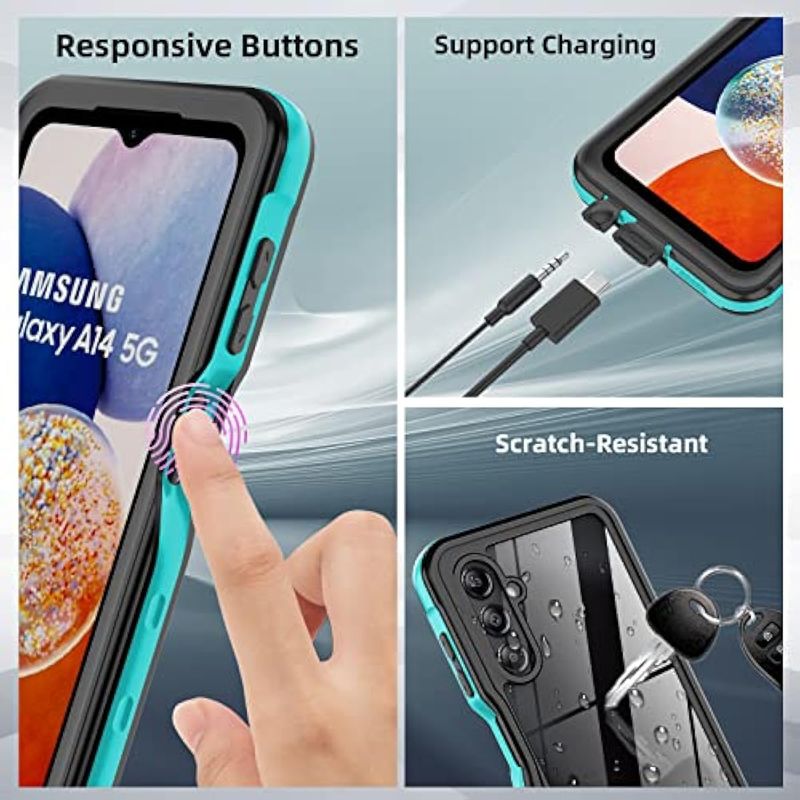 Funda impermeable para Samsung Galaxy A14 5G, con protector de pantalla integrado y soporte de