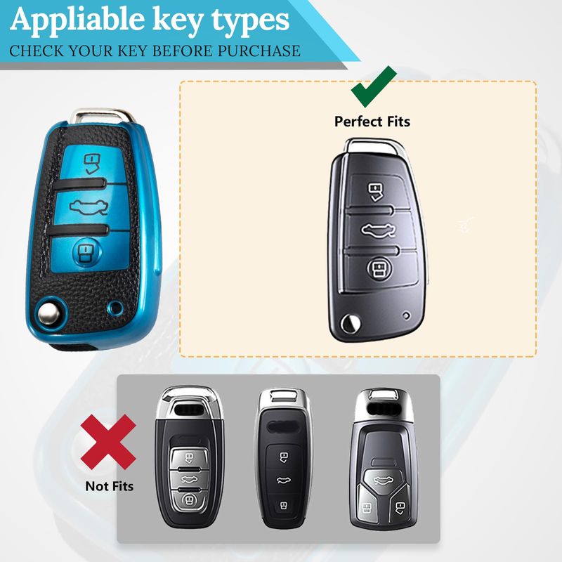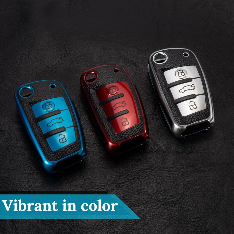 Funda para llavero Audi con llavero de cuerda trenzada de metal, carcasa de grano de superficie de
